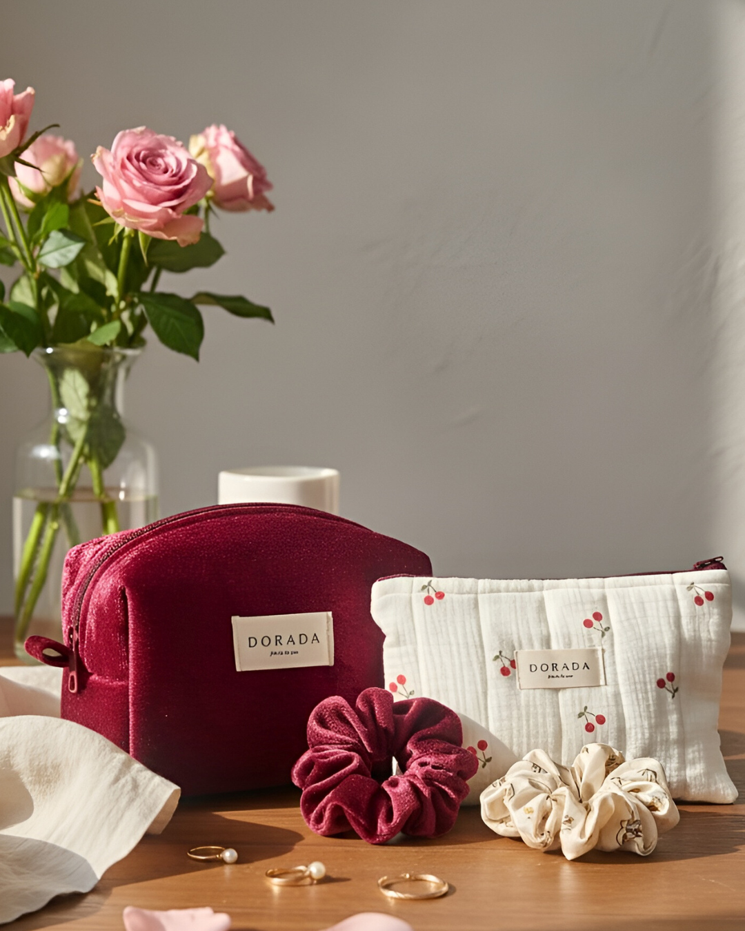 Create your perfect combination of Dorada pieces — choose any makeup bag, pouch, or scrunchie to mix and match your way for a special discounted price 💌 Whether you’re curating a thoughtful gift or completing your own collection, each bundle is made to feel personal, timeless, and uniquely yours.🎁